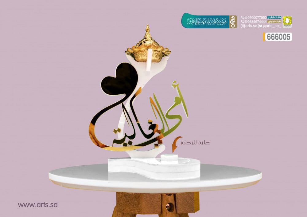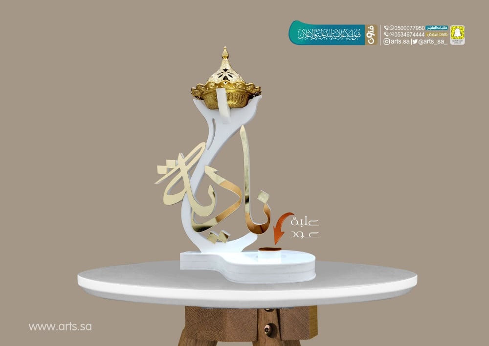 مبخرة اكريلك ( ابيض ) مع الاسم + علبة للعود 66600002